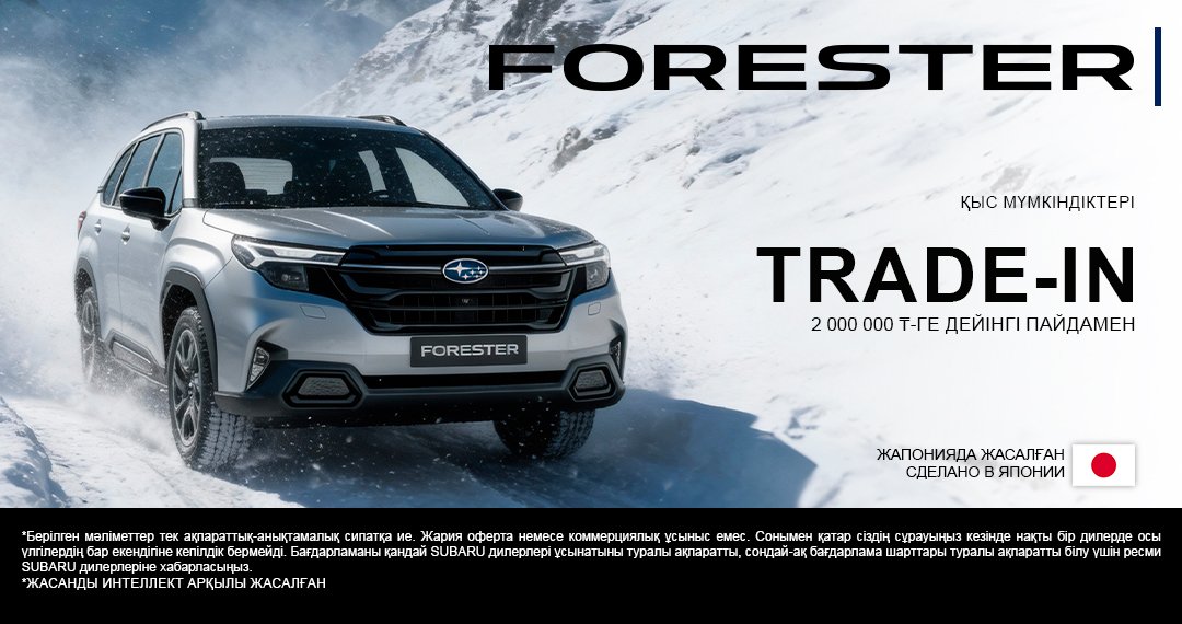 Subaru Forester-мен бірге мүмкіндіктердің қысы. 2 000 000 теңгеге дейінгі пайдамен.